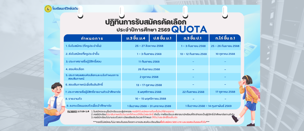 ประกาศรายชื่อนักเรียนรอบโควตา ประจำปีการศึกษา 2569