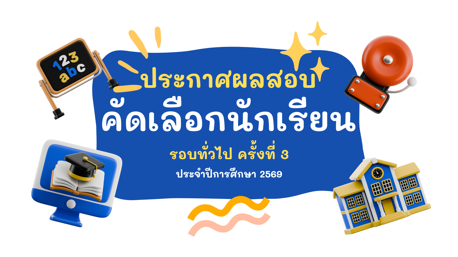 ประกาศรายชื่อผู้ผ่านการสอบคัดเลือกเข้าศึกษาต่อ (รอบทั่วไป 3) ประจำปีการศึกษา 2569 admin . February 24, 2026February 24, 2026 คลิก